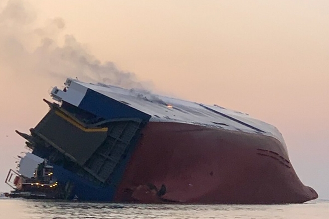 | Con tàu bị lât và chìm dần bên ngoài vùng biển Georgia, Mỹ. Ảnh Getty Images. |