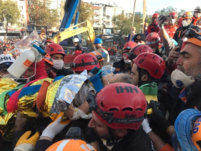 Ngày 3/11, 90 giờ sau khi trận động đất xảy ra, lực lượng cứu hộ ở Izmir đã cứu được một bé gái còn sống ra khỏi đống đổ nát.
