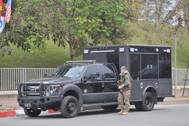 | Đoàn xe chở Tổng thống Trump đã rời khách sạn JW Marriott. |
