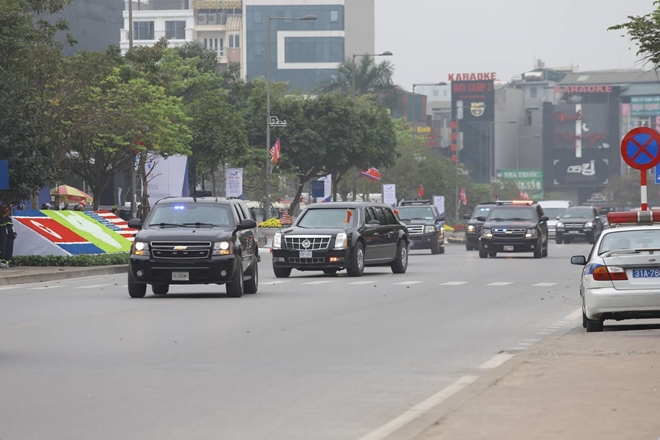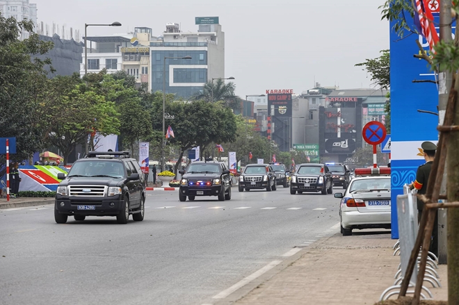 15h10 ngày 28-2, đoàn xe chở Tổng thống Donald Trump rời khách sạn JW Marriott, di chuyển về hướng sân bay quốc tế Nội Bài.