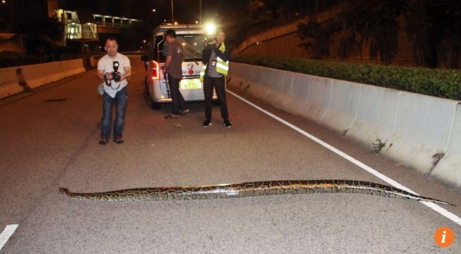 Ngày 15-12, Tờ Bưu Điện Hoa Nam buổi sáng đưa tin, một con trăn lớn dài khoảng 3,5 mét đã làm nhiều người hoảng sợ khi nó xuất hiện tại một đường cao tốc tại Tuen Mun, HongKong.