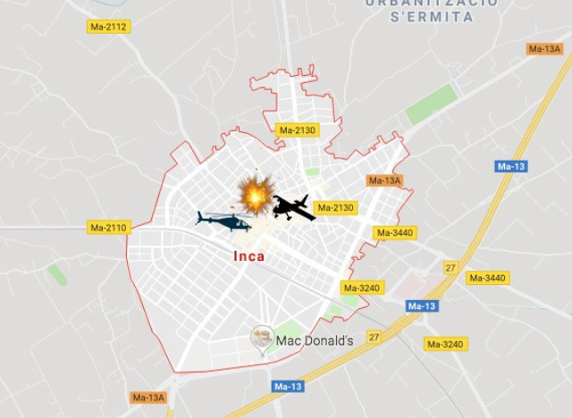 Trong khi đó, cảnh sát địa phương xác nhận, các mảnh vỡ của chiếc trực thăng đã rơi xuống một cách đồng gần một nông trại dọc theo con đường từ thành phố Sencelles đến thị trấn Sineu nước này.