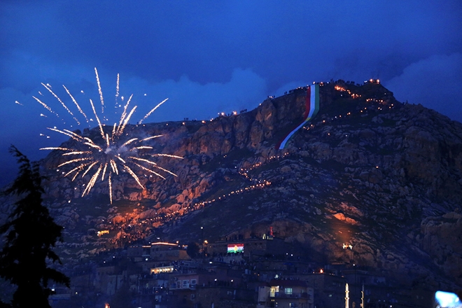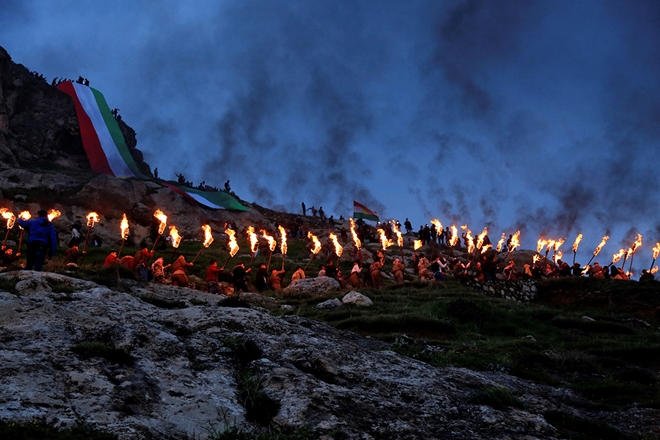 Những Kurd tại Iraq tổ chức lễ mừng Newroz tại thị trấn Akra. Đại hội đồng Liên Hiệp Quốc vào năm 2010 đã công nhận Ngày Quốc tế Newroz, miêu tả đây là một lễ hội mùa xuân có nguồn gốc Ba Tư và đã được tổ chức trong trên 3.000 năm. Ảnh: Aljazerra