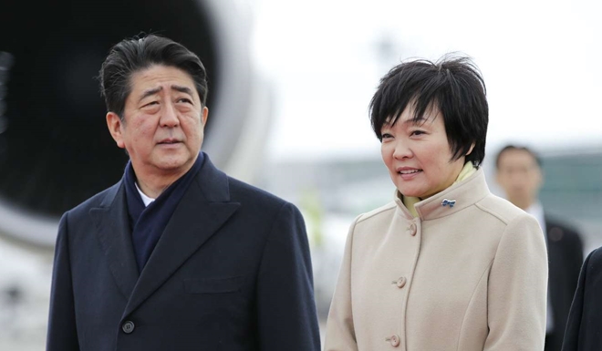 | Thủ tướng Shinzo Abe và vợ, bà Akie Abe. Ảnh: SCMP |
