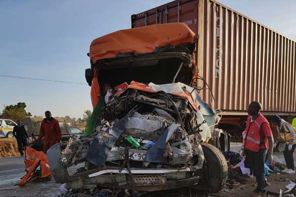 | Đầu máy của chiếc xe tải bị biến dạng sau vụ tai nạn. Ảnh: Daily Nation |
