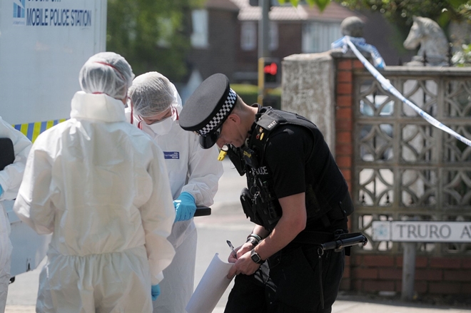 | Một số lượng lớn cảnh sát và nhân viên khám nghiệm đã được điều đến hiện trường vụ án. Ảnh: MEN |