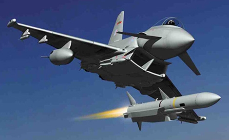 | Máy bay chiến đấu Eurofighter Typhoon Không quân Anh đang phóng Brimstone tiêu diệt các mục tiêu IS ở Syria. |