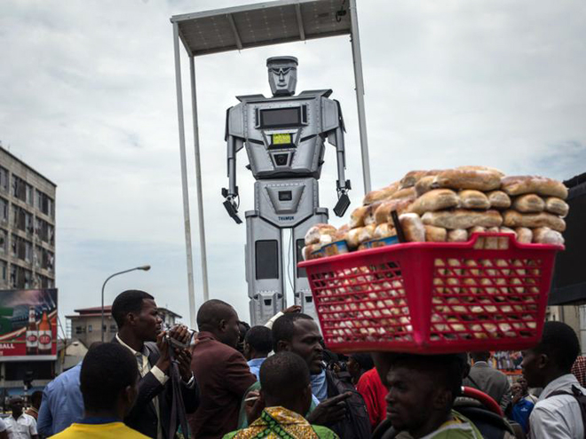 Tại thủ đô Kinshasa của Cộng hòa Dân chủ Congo, từ năm 2013 đã được trang bị robot cảnh sát giao thông sử dụng năng lượng mặt trời trong nỗ lực giảm thiểu lượng thương vong và giúp người dân tuân thủ đúng luật giao thông hơn. Được trang bị một cặp kính râm, robot hình người đồ sộ đứng ở các nút giao thông đông đúc như một loại phương tiện đa năng tất cả -  trong - một: đèn giao thông/lối đi bộ qua đường/camera giao thông.