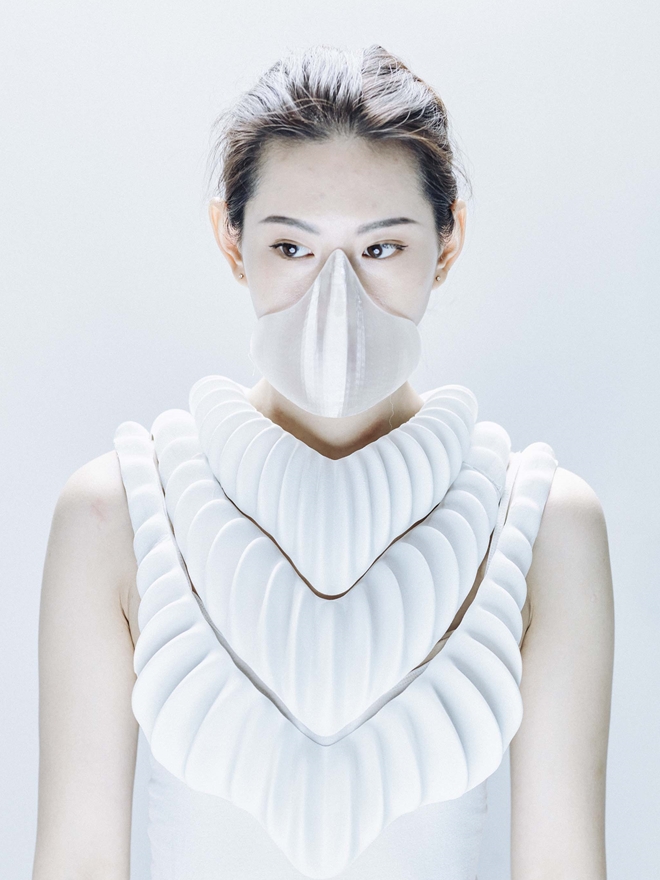Amphibio là một chiếc áo cực nhẹ được làm bằng polymer, in 3D và có vai trò như một hệ thống mang cá nhân tạo kiêm bóng khí giúp chúng ta sinh tồn giữa biển nước, được lấy ý tưởng từ nhện lặn và các loài côn trùng có lớp da siêu kỵ nước, cho phép chúng thu và giữ bóng khí xung quanh cơ thể. Những chiếc bóng khí này đóng vai trò như mang cá: lấy oxy phân tán trong nước xung quanh và giải phóng CO2.