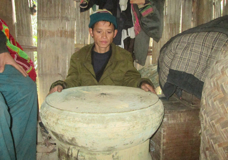 | Chiếc trống đồng là dụng cụ không thể thiếu để làm "ma khô". |