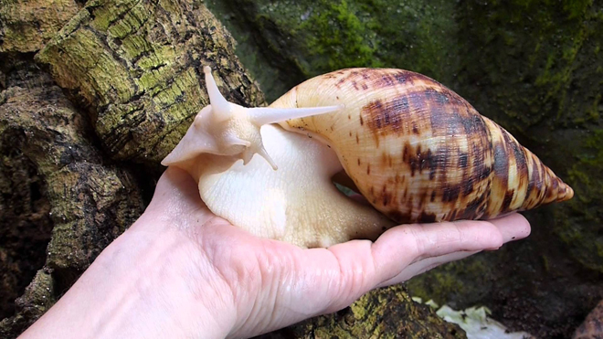 Những điều kiện làm việc đặc biệt được tổ chức cho ốc Ahatina: đó là độ ẩm và nhiệt độ không đổi, chế độ làm việc và nghỉ ngơi cố định, ăn theo giờ. Trò giải trí của ốc là trái bóng quay mà chúng có thể bò dạo trong đó nhằm làm giảm hiệu suất căng thẳng.