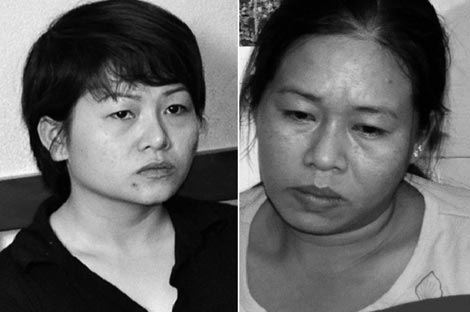 | Trần Thị Bích Hằng (trái) và Mai Nữ Lệ Quyên bị bắt giữ |