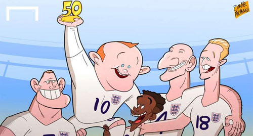 | Wayne Rooney lập kỷ lục mới trong màu áo Tam sư, ghi được 50 bàn thắng. R10 đã xô đổ thành tích của huyền thoại Bobby Charlton. |