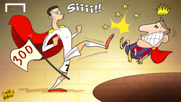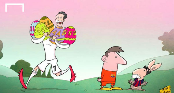 | Tại La Liga, Ronaldo vừa lập một thành tích mới ghi 5 bàn thắng một trận, trong khi đó Messi và Neymar "tịt ngòi". |