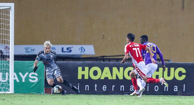 Đó là tình huống mà Hà Nội được một quả đá phạt trực tiếp. Người đã đứng trước bóng là Quang Hải. Cầu thủ mang áo số 19 có pha xử lý hết sức bất ngờ khi thay vì sút thẳng, anh lại bấm bóng loại bỏ hàng phòng ngự đội khách. Bùi Tiến Dũng lao ra nhưng anh vẫn chậm hơn Văn Quyết nên phải vào lưới nhặt bóng.