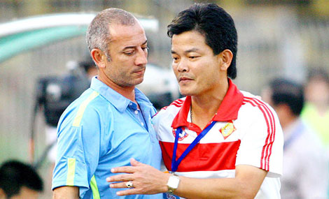 | Tính đến lúc này, HLV Văn Sỹ (phải) có một sự nghiệp huấn luyện khá gập ghềnh. |