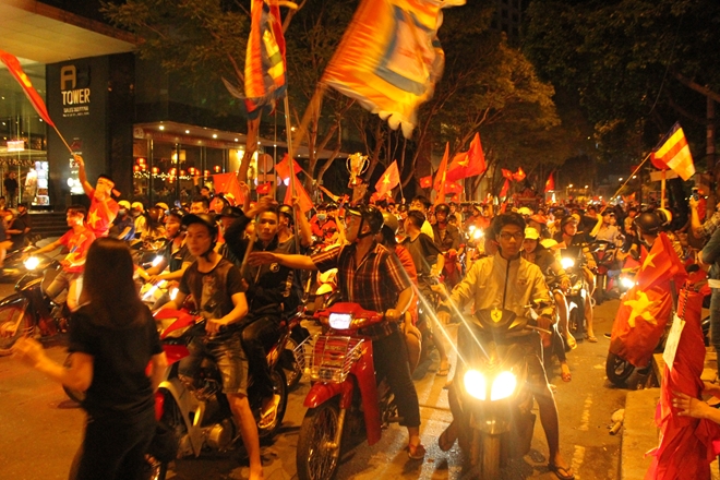 Tiếng còi của trọng tài vang lên kết thúc trận đấu, CĐV khắp nơi trên địa bàn TP Hồ Chí Minh đã nhanh chóng xuống đừng reo hò ăn mừng, kết quả hòa là tỉ số mà các CĐV đội tuyển Việt Nam không mong muốn nhưng cũng đủ để CĐV đội tuyển Việt Nam hy vọng một niềm tin chiến thắng ở trận chung kết lượt về.