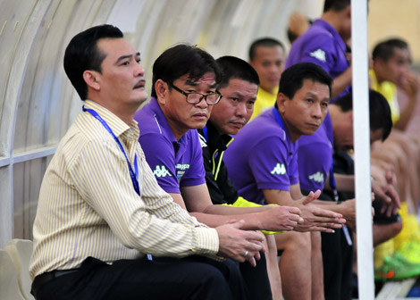 | Ban huấn luyện Hà Nội T&T đau đầu về phong độ của các cầu thủ. Ảnh: H.M. |