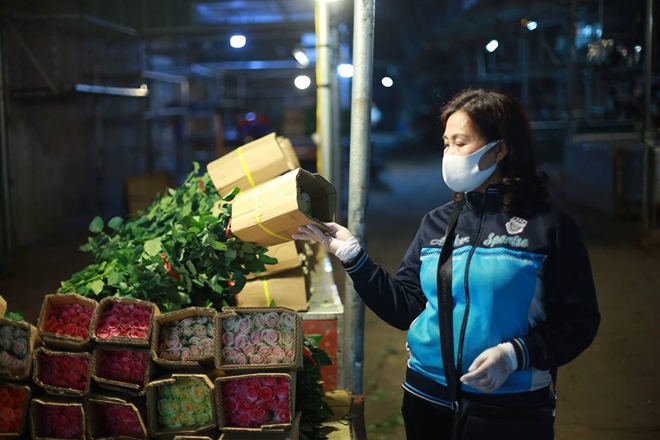 | Chị Hương một tiểu thương kinh doanh hoa hồng Đà Lạt cho biết lượng hoa tiêu thụ ở cửa hàng của chị tụt xuống khoảng gần 5 lần so với trước dịch. Cả buổi tối ngày 27/4 chị chỉ bán được vỏn vẹn 3 bó hoa. |