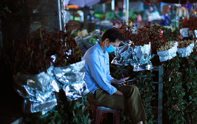 Chợ hoa Quảng An ế ẩm, thương lái mệt mỏi chờ đợi khách trong đêm