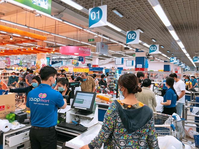 Thông tin từ Liên hiệp Hợp tác xã thương mại TP Hồ Chí Minh (Saigon Co.op), sau khi có thông tin thành phố sẽ thực hiện giãn cách xã hội theo Chỉ thị 15 của Thủ tướng Chính phủ từ 0 giờ ngày 31/5, chiều 30/5 nhiều người dân lo ngại về dịch bệnh nên đổ xô đi mua sắm tích trữ lương thực, thực phẩm khiến lượng người tại các siêu thị tăng đột biến.