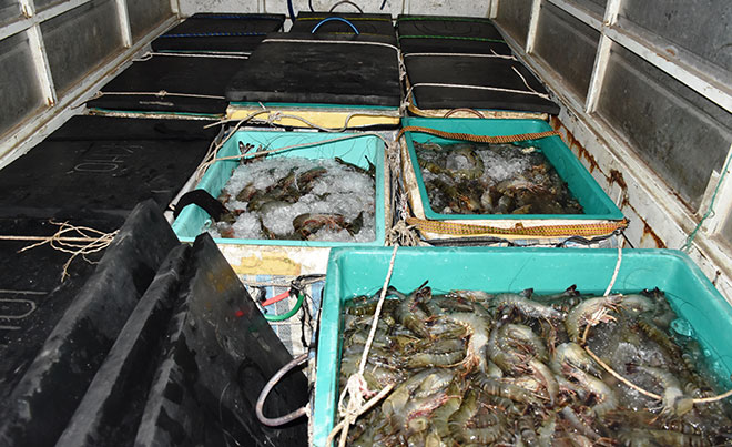 Hơn 250kg tôm chứa tạp chất trên đường đi tiêu thụ thì bị phát hiện