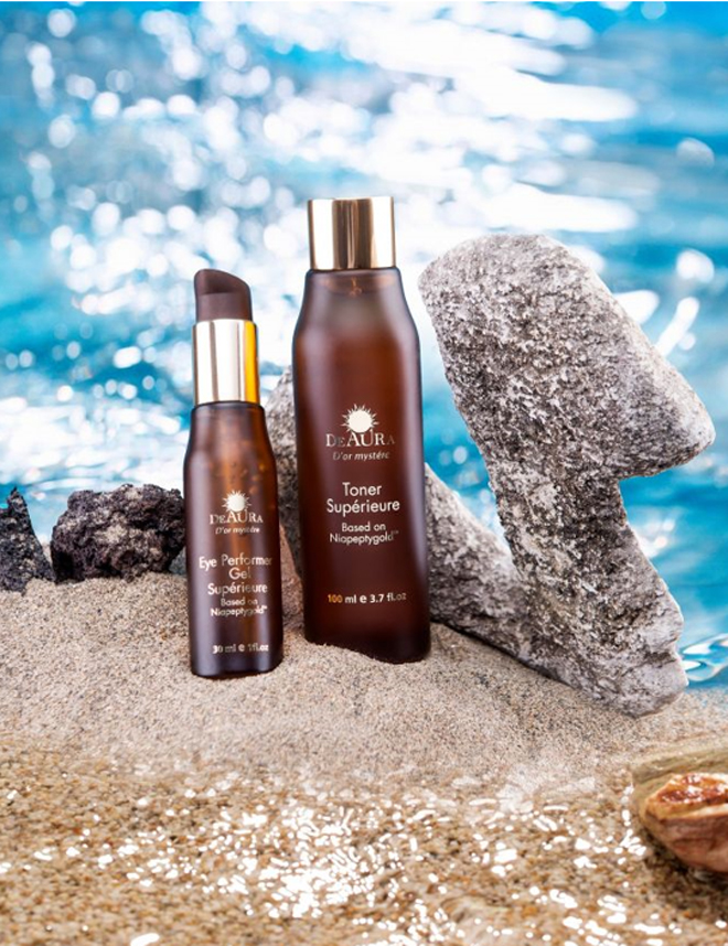 Hòa mình vào xu hướng “xanh hóa” của thế giới, mỹ phẩm DeAura tập trung khai thác sức mạnh từ thiên nhiên Israel, chiết xuất thảo dược và bùn khoáng từ biển Chết, chứa đựng những dưỡng chất lắng đọng tinh túy trong bộ sản phẩm D’or Mystére. Deaura kết hợp hoàn hảo các thành phần tự nhiên với những thành phần vượt trội cho chu trình trẻ hóa như vàng 24carat, Vitamin B3, Hexyl Peptit-19, tạo nên hợp phức NIAPEPTYGOLD.