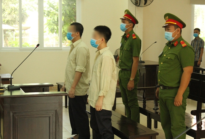 | Hai bị cáo Minh và Tiến (áo sơ mi vàng nhạt) tại toà |