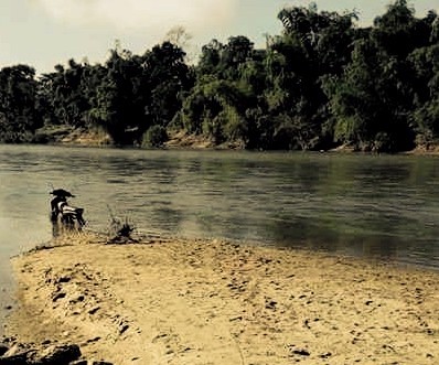| Chiếc xe máy để lại trên bờ sông. |