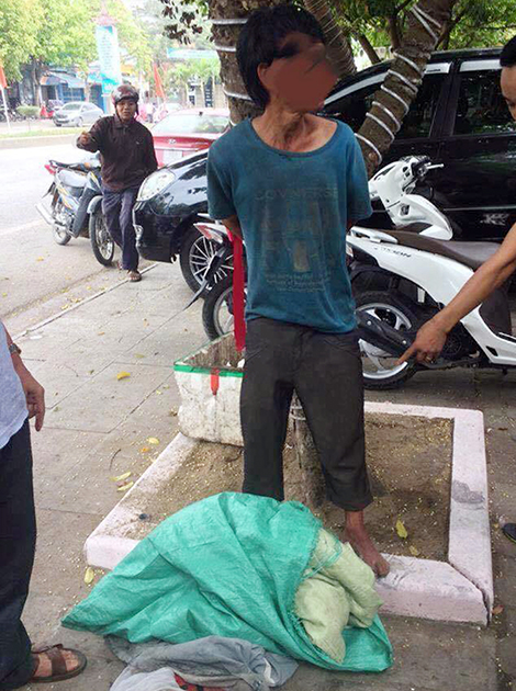 | Người đàn ông tâm thần bị nhân dân bắt, trói vì nghi ngờ bắt cóc trẻ em |