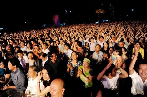 Đặc biệt ngoài tốp ca của Soul Music Academy, theo tiết lộ của Ban Tổ chức, chương trình năm nay có sự góp mặt của ca đoàn nhà thờ - Ban Hợp Xướng Pio X với số lượng lên tới 50 người và sẽ cùng nhau hát “Để gió cuốn đi”.| Đêm nhạc nhớ Trịnh 2015 thu hút được rất đông người yêu nhạc. |