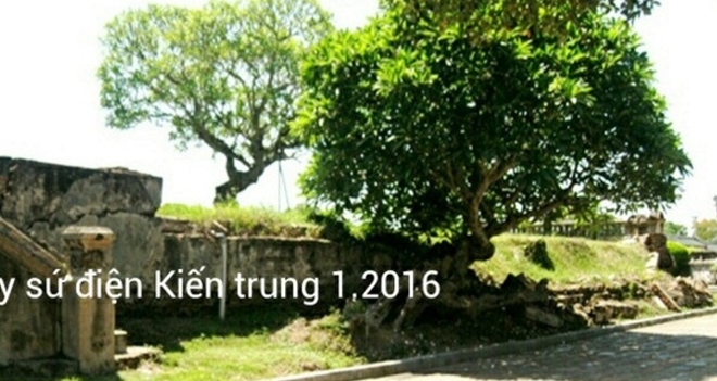 | Hình ảnh cây sứ tại điện Kiến Trung được Trung tâm BTDT Cố đô Huế ghi lại vào tháng 1-2016 trước khi di dời. |