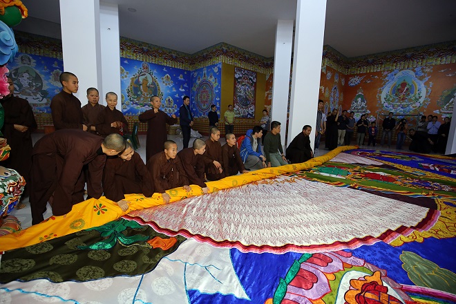 Bức tranh cuộn Phật Quan Âm là món quà kỉ niệm 10 năm Đức Gyalwang Drukpa lần đầu tiên tới thăm Việt Nam, khai mở cho nhân dân chiêm bái tại Đại Bảo tháp Mandala Tây Thiên, Vĩnh Phúc. Bức tranh được tổ chức Kỉ lục Việt Nam (VietKings) công nhận là bức tranh cuộn “Phật Quan Âm Thiên Thủ Thiên Nhãn” lớn nhất Việt Nam.