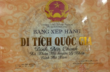 Thật vinh dự và tự hào, đình, đền làng Chanh quê tôi đã được Nhà nước cấp bằng xếp hạng Di tích Quốc gia (loại hình nghệ thuật kiến trúc).