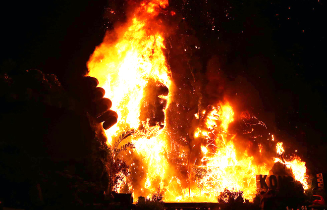 Tuy nhiên, ngay sau phần diễn này, sân khấu chính bỗng nhiên bốc cháy. Lửa bén từ phần đầu mô hình Vua khỉ - được làm bằng vật liệu dễ cháy - và lan nhanh ra sân khấu.