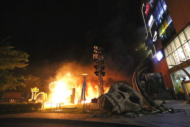 Ngọn lửa bùng cháy dữ dội khiến tòa nhà - nơi có rạp chiếu phim - bị mất điện cục bộ.