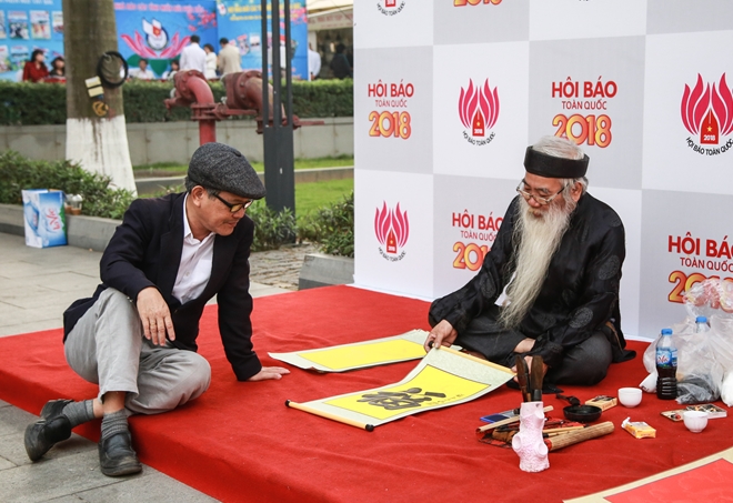 | Một ông đồ tặng chữ tại Hội báo Toàn quốc 2018. Tiếp nối thành công của Hội báo Toàn quốc 2016 và 2017, năm nay Hội báo tiếp tục được tổ chức tại Thủ đô Hà Nội. |