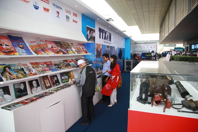 | Góc trưng bày của Thông tấn xã Việt Nam với sự xuất hiện của đầy đủ các ấn phẩm, cùng góc trưng bày các hiện vật được các nhà báo lão thành sử dụng trong các thời khắc lịch sử của đất nước. |