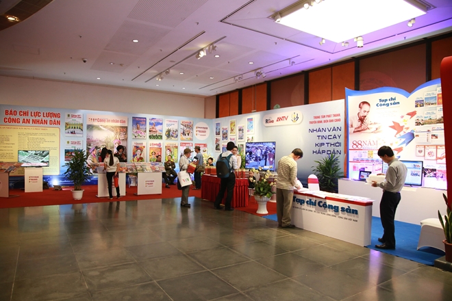 | Khu trưng bày của báo chí lực lượng CAND hút độc giả tại Hội báo toàn quốc. |