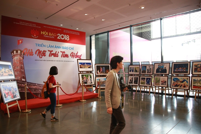 | Một góc triển lãm ảnh "Hà Nội trái tim hồng" tại Hội báo Toàn quốc 2018. |