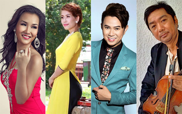 | Các ca sĩ tiếp nối ngọn lửa nhân ái từ nhạc sĩ Nguyễn Ánh 9 trong chương trình “Đường xưa lối cũ” năm 2016. |