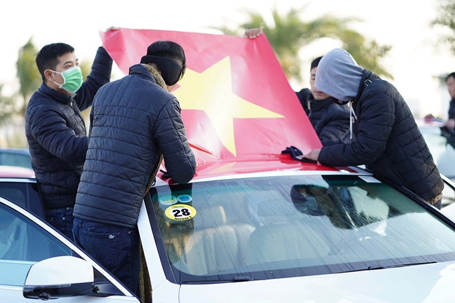 Trước khi đặt chân tới Lũng Cú để thực hiện nghi lễ trang trọng, tất cả gần 100 xe đã được dán lá quốc kỳ đầy tự hào trước khi khởi hành.