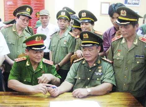 | Thượng tướng Nguyễn Khánh Toàn và Thượng tướng Lê Thế Tiệm (nguyên Thứ trưởng Bộ Công an) và đoàn công tác của Bộ Công an đến thăm Bảo tàng Ban An ninh Khu V. |