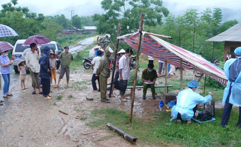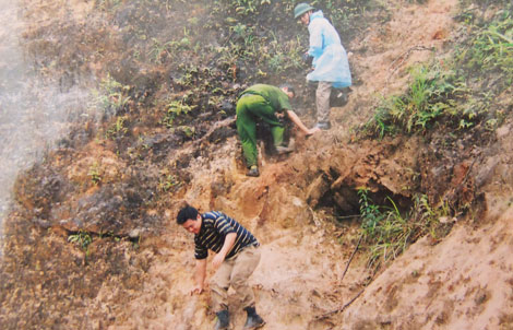 | Các bác sỹ pháp y phòng PC54 Công an tỉnh Yên Bái chuẩn bị phương tiện khám nghiệm tử thi vụ bé trai 9 tháng tuổi bị ném xuống suối xảy ra tại xã Yên Bình, huyện Yên Bình năm 2011. |