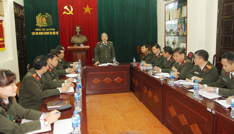 Thiếu tướng Lê Vân, Cục trưởng Cục An ninh chính trị nội bộ cùng lãnh đạo, CBCS triển khai phương án đảm bảo an ninh.