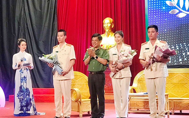 | Đại úy Dương Danh Đạt (thứ 2 từ trái sang) tại buổi tuyên dương 11 gương mặt trẻ Công an thủ đô xuất sắc tiêu biểu. |