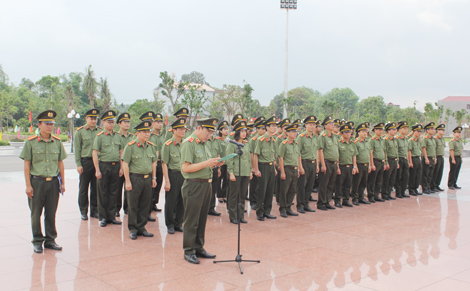 | Cán bộ, chiến sĩ Cục An ninh Văn hóa, Thông tin, Truyền thông báo công dâng Bác. |