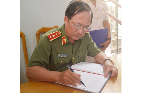 | Thượng tướng Nguyễn Văn Thành, Thứ trưởng Bộ Công an ghi cảm tưởng nhân dịp khánh thành phòng tưởng niệm. |