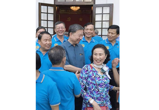 | Đại tướng Tô Lâm, Uỷ viên Bộ Chính trị, Bộ trưởng Bộ Công an là một trong những học viên khóa D6 Học viện An ninh nhân dân hòa mình cùng bạn bè trong ngày gặp mặt hội khóa. |