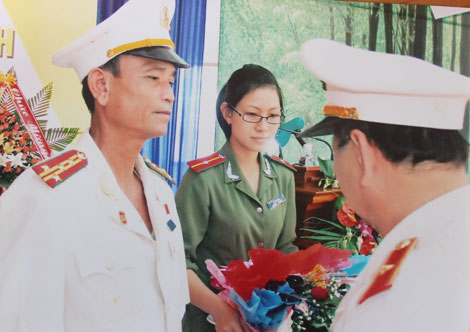 | Đại tá K'Tiêng nhận bằng khen do Giám đốc Công an tỉnh trao. |